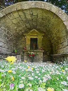 Wayside shrine dedicated at the Guardian Angel near the top of Mount Tre Fontane is one of the several wayside shrines along the Dorsale dei Peloritani path
