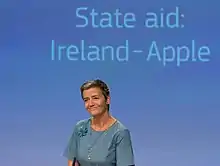 On 29 August 2016 the European Commissioner for Competition concluded Apple had received illegal State aid from Ireland.[12] The Commission ordered Apple to pay €13 billion, plus interest, in unpaid Irish taxes on circa €111 billion of profits, for the ten-year period, 2004–2014.[57] It was the largest corporate tax fine in history.[18]