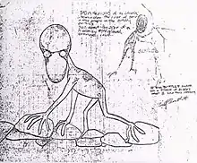 The teenagers all drew sketches of the alleged creature. Bartlett wrote on his sketch, "I, Bill Bartlett, swear on a stack of Bibles that I saw this creature." According to the Boston Globe, "the locations of the sightings, plotted on a map, lay in a straight line over 2 miles".[1]
