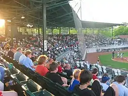 The Down East Wood Ducks play their home games at Grainger Stadium, located at 400 East Grainger Avenue in Kinston. The original structure was built by architect John J. Rowland in 1949 at a cost of $170,000 inclusive of everything except the land, with $150,000 raised by bond issue.[31] The stadium is owned by the city and leased by the team. A dedicatory plaque identifies the structure as "Municipal Stadium," but it has been called Grainger Stadium since it was first built.[32] Kinston Indians ownership referred to it as "Historic Grainger Stadium" due to its age relative to other fields in the Carolina League. It is the second-oldest stadium in the circuit. The name Grainger comes from its location on Grainger Avenue as well as its use early on by Grainger High School. Grainger is a prominent old family name in Lenoir County. The Texas Rangers have invested in a multi-year renovation project to improve the 4,100-seat facility.[10]