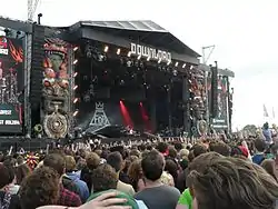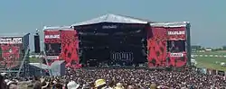 Main Stage The main stage was situated in the centre of the arena with crowd control moving around it, and was the largest of all three stages, the safety barriers used at this stage were in a T shape so as to avoid crowd crush in the middle. The stage was open-air and named in honour of the 25th anniversary of Kerrang! magazine. Down played an unannounced set on Saturday (With the laminates showing ??? in their time slot); opening up the Main Stage.[11]