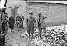 Tito and Mihailović met again on 27 October 1941 in the town of Brajići near Ravna Gora in an attempt to achieve an understanding, but found consensus only on secondary issues.[46] Immediately following the meeting, Mihailović began preparations for an attack on the Partisans, delaying the attack only for lack of arms.[47] Mihailović reported to the Yugoslav government-in-exile that he believed the occupation of Užice, the location of a gun factory, was required to prevent the strengthening of the Partisans.[44] On 28 October, two Chetnik liaison officers first approached Nedić and later that day German officer Josef Matl of the Armed Forces Liaison Office, and offered Mihailović's services in the struggle against the Partisans in exchange for weapons.[32][47] This offer was relayed to the German general in charge of the Territory of the Military Commander in Serbia, and a meeting was proposed by the German for 3 November. On 1 November, the Chetniks attacked the Partisan headquarters at Užice, but were beaten back.[48][49] On 3 November 1941 Mihailović postponed the proposed meeting with the German officers until 11 November, citing the "general conflict" in which the Chetniks and Partisans were engaged requiring his presence at his headquarters.[49][50] The meeting, organized through one of Mihailović's representatives in Belgrade, took place between the Chetnik leader and an Abwehr official, although it remains controversial if the initiative came from the Germans, from Mihailović himself, or from his liaison officer in Belgrade.[lower-alpha 3] In the negotiations Mihailović assured the Germans that "it is not my intention to fight against the occupiers" and claimed that "I have never made a genuine agreement with the communists, for they do not care about the people. They are led by foreigners who are not Serbs: the Bulgarian Janković, the Jew Lindmajer, the Magyar Borota, two Muslims whose names I do not know and the Ustasha Major Boganić. That is all I know of the communist leadership."[51] It appears that Mihailović offered to cease activities in the towns and along the major communication lines, but ultimately no agreement was reached at the time due to German demands for the complete surrender of the Chetniks,[52][53][54] and the German belief that the Chetniks were likely to attack them despite Mihailović's offer.[55] After the negotiations, an attempt was made by the Germans to arrest Mihailović.[56] Mihailović carefully kept the negotiations with the Germans secret from the Yugoslav government-in-exile, as well as from the British and their representative Hudson.[52][48]