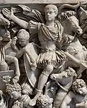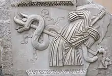 The draco is depicted on the Ludovisi battle sarcophagus, above the horseman who is the central figure in the composition. It appears in several other reliefs, including the Arch of Galerius and the Arch of Constantine, both from the early 4th century.[6]