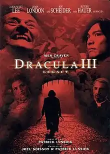 Dracula III: Legacy is a 2005 horror film and the sequel to Dracula 2000 and Dracula II: Ascension. The film was directed by Patrick Lussier and stars Jason Scott Lee, Jason London, Roy Scheider, and Diane Neal. It was released direct-to-video on July 12, 2005.