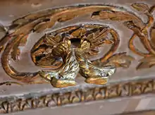 A drawer pull often includes a plate to which the handle is fastened. The handle may swing from one or two mounts ("drop handle" or "swing handle"), making a drop drawer pull. A bail handle is a kind of swing handle consisting of an open loop attached to two mounts. The handle may also be fastened to the plate with rivets, making it immovable. The plate may be ornamented by piercing, embossing, or both. The ornament may also be cut on the surface with tools, leaving it sunken into the metal. The stock for handles may be round, rectangular, or irregular forged shapes.[1]
