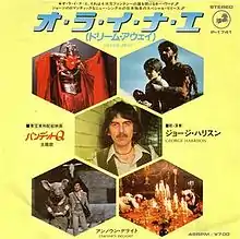 "Dream Away" (Japanese: オ・ラ・イ・ナ・エ, O Ra I Na E) is a song by English rock musician George Harrison from his 1982 album Gone Troppo. The song was featured over the end credits of Harrison's 1981 HandMade Films production Time Bandits, which was director Terry Gilliam's first successful film outside of his work with Monty Python.[1] Aside from the film's orchestral score, it was the only song featured in Time Bandits and was written specifically for the film. "Dream Away" was also issued as a single in Japan in February 1983.