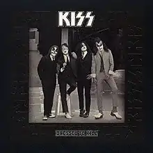 While the album cover depicts Kiss in business suits, the only member of the band who actually owned one was Peter Criss. The suits worn on the cover by the rest of the band were owned by manager Bill Aucoin.[7] The original vinyl release of the album also had the Kiss logo embossed around the picture. The photograph of the band on the album cover was taken on the southwest corner of 23rd Street and 8th Avenue looking north in New York City.