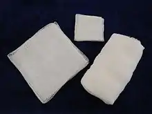 A dressing is a sterile pad or compress[1] applied to a wound to promote healing and protect the wound from further harm.[2] A dressing is designed to be in direct contact with the wound, as distinguished from a bandage, which is most often used to hold a dressing in place. Many modern dressings are self-adhesive.