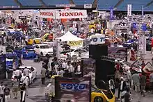 As a trade and consumer show, exhibitors market and sell various aftermarket products and services for cars ranging from mobile audio-video equipment to engine oils and lubricants. More recently, non-automotive companies like Pepsi, SoBe and Solo Mobile have participated in the Driven To Perform events to target the young, affluent and traditionally male demographics. Frequently, spokesmodels are present to attract showgoers and to pose for photographs alongside cars. These models are also known as import models or booth babes and have gained massive popularity among those in the import scene and now beyond into mainstream media and pop culture.[4][5] Increasingly, music (mostly hip-hop, urban and electronica) and dance have become a large part of the Driven To Perform tour. Whether its DJs spinning the latest tracks, up and coming recording artists performing onstage or B-boys and Go-Go dancing, the lights, the sound and the movement are now an unavoidable staple of these multi-faceted events.[6] The Canadian Street Dance Competition held annually within the Vancouver stop of the tour has in recent years grown to become its own standalone show; especially amongst the street dance community.[7] Though conceptually different in theme, execution and scope, DTP shares many similarities and has been compared to the Hot Import Nights series operating in the USA, although much smaller and with fewer attendees.