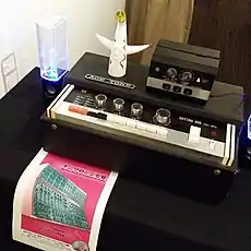 In the early 1960s, a nightclub owner in Tokyo, Tsutomu Katoh was consulted from a notable accordion player, Tadashi Osanai, about the rhythm machine he used for accompaniment in club, Wurlitzer Side Man. Osanai, a graduate of the Department of Mechanical Engineering at University of Tokyo, convinced Katoh to finance his efforts to build better one.[11] In 1963, their new company Keio-Giken (later Korg) released their first rhythm machine, Donca-Matic DA-20 using the vacuum tube circuits for sounds and mechanical-wheel for rhythm patterns. It was a floor-type machine with built-in speaker, and featuring a keyboard for the manual play, in addition to the multiple automatic rhythm patterns. Its price was comparable with the average annual income of Japanese at that time.[12]