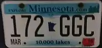 Minnesota has a similar program, where the plates are white with either blue or black text. The plate number is a "W", followed by a letter and four numbers. These plates may be issued to drivers with at least 2 offenses in a five-year period; three offenses in a ten-year period; having a BAC twice the legal limit; or having a child in the car at the time of arrest.[54] In Minnesota, DUI plates are referred to as "whiskey plates",[55] whiskey being the name of the letter W in the NATO phonetic alphabet.