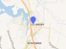 Drury is a rural town near Auckland, in northern New Zealand. Located 36 kilometres to the south of Auckland CBD, under authority of the Auckland Council. Drury lies at the southern border of the Auckland metropolitan area, 12 kilometres to the northeast of Pukekohe, close to the Papakura Channel, an arm of the Manukau Harbour.[2]
