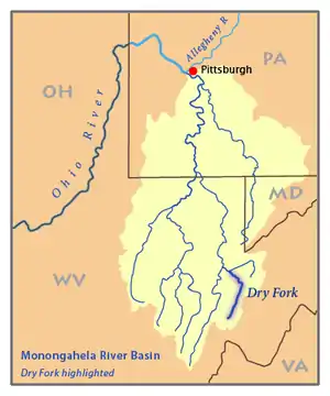 ![]() Map of the Monongahela River basin, with Dry Fork highlighted. | |