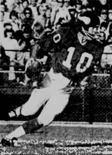 In 1972, Chicago Bears quarterback Bobby Douglass set the single-season rushing yards record for a quarterback, as he logged 968 yards.[17] Douglass, however, was not considered a good passer. His receivers complained that his arm was "too strong," and he often overthrew the ball.[17] The Bears attempted to create wild schemes, before discovering his rushing ability, leading to his record-breaking 1972 season.[17]