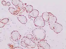 Ductal carcinoma in situ (DCIS), also known as intraductal carcinoma, is a pre-cancerous or non-invasive cancerous lesion of the breast.[1][2] DCIS is classified as Stage 0.[3] It rarely produces symptoms or a breast lump one can feel, typically being detected through screening mammography.[4][5]