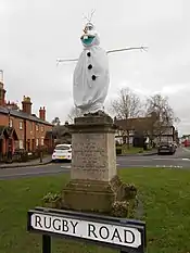 Since the 1970s an annual tradition has developed in the village for a group of pranksters to secretly dress up the statue as a cartoon or TV character overnight at the beginning of the Christmas holidays.[4] The statue was dressed up as Queen Elizabeth II during her diamond jubilee weekend celebrations. In 2012 the statue was dressed up as an Olympian for the final leg of the Olympic torch relay sporting a headband and runners jersey.[11] 2017 saw the statue become Paddington Bear, and 2018 The Grinch.[12]