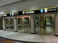 Dundas is a subway station on Line 1 Yonge–University in Toronto, Ontario, Canada.[2] It is located at the intersection of Yonge Street and Dundas Street. Wi-Fi service is available at this station.[3]