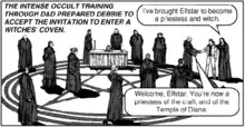 The concept of Dungeons & Dragons as Satanic was linked to the concept of Satanic ritual abuse, in that both presumed the existence of large, organized Satanic cults and societies.[6] Sources such as the Dark Dungeons tract from Chick Publications portray D&D as a recruitment tool for these organizations.[7][8][9][10][11]