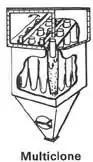 The most common types of centrifugal, or inertial, collectors in use today are: