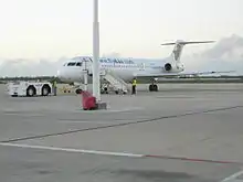 At the time of its bankruptcy, the airline operated two aircraft Fokker 100, one ATR-42, one ATR-72 [5] and three McDonnell Douglas MD-83 wet-leased from Falcon Air Express.[6] There were plans to eventually replace the Fokker 100s with newer A319-100s and A320-200s.[7]