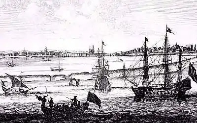 Only in 1630 did the West India Company manage to conquer a part of Brazil. In 1630, the colony of New Holland (capital Mauritsstad, present-day Recife) was founded, taking over Portuguese possessions in Brazil. In the meantime, the war demanded so many of its forces that the Company had to operate under a permanent threat of bankruptcy.[19] In fact, the GWC went bankrupt in 1636 and all attempts at rehabilitation were doomed to failure.[20]