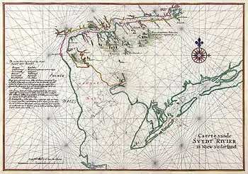The Dutch West India Company [nb 1] was a chartered company (known as the "GWC") of Dutch merchants as well as foreign investors. Among its founders was Willem Usselincx (1567–1647) and Jessé de Forest (1576–1624).[1] On 3 June 1621, it was granted a charter for a trade monopoly in the Dutch West Indies by the Republic of the Seven United Netherlands and given jurisdiction over Dutch participation in the Atlantic slave trade, Brazil, the Caribbean, and North America. The area where the company could operate consisted of West Africa (between the Tropic of Cancer and the Cape of Good Hope) and the Americas, which included the Pacific Ocean and the eastern part of New Guinea. The intended purpose of the charter was to eliminate competition, particularly Spanish or Portuguese, between the various trading posts established by the merchants. The company became instrumental in the largely ephemeral Dutch colonization of the Americas (including New Netherland) in the seventeenth century. From 1624 to 1654, in the context of the Dutch-Portuguese War, the GWC held Portuguese territory in northeast Brazil, but they were ousted from Dutch Brazil following fierce resistance.[2]