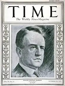 Dwight Whitney Morrow (January 11, 1873 – October 5, 1931) was an American businessman, diplomat, and politician of Scots-Irish descent, best known as the U.S. ambassador who improved U.S.-Mexican relations, mediating the religious conflict in Mexico known as the Cristero rebellion (1926–29), but also contributing to an easing of conflict between the two countries over oil. The Morrow Mission to Mexico was an "important step in the 'retreat from imperialism'".[2] He was the father of Anne Morrow and father-in-law of Charles A. Lindbergh.