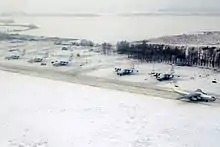 In 1955 it was one of only 6 Soviet bases capable of handling the Myasishchev M-4 bomber. In 1967 it had 7 Tupolev Tu-22s used for training.[1] In 1973 it received 2 Tu-22M0 aircraft.[1] It was also home to 43 TsBPiPLS (43rd Center for Combat Application and Training of Air Crew) which included the Tu-22M, Tu-95MS, and Tu-134UBL trainer.[2] In 1985 the 49 TBAP (49th Heavy Bomber Aviation Regiment) arrived at Dyagilevo, flying Tu-22M and Tu-95 aircraft and eventually converting into an ITBAP (training regiment). The 49th Regiment was part of the 43rd Centre, and eventually disbanded in 1997.[3]