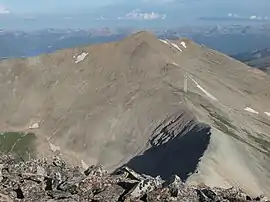 Dyer Mountain is a high mountain summit in the Mosquito Range of the Rocky Mountains of North America. The 13,862-foot (4,225 m) thirteener is located 5.9 miles (9.5 km) east (bearing 95°) of the City of Leadville, Colorado, United States, on the drainage divide separating Lake County from Park County.[1][2][3] The mountain was named in honor of frontier preacher John Lewis Dyer.