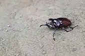 Rhinoceros beetles have become popular pets in parts of Asia,[6] due to being relatively clean, easy to maintain, and safe to handle. Also in Asia, male beetles are used for gambling fights.[7] Since males naturally have the tendency to fight each other for the attention of females, they are the ones used for battle. To get the two male beetles to lock in combat, a female beetle is used, or a small noisemaker duplicating the female's mating call.