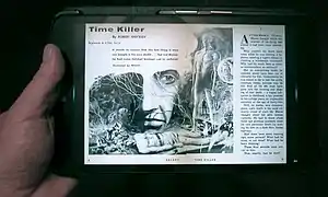 On January 27, 2010 Apple Inc. launched a multi-function tablet computer called the iPad[19] and announced agreements with five of the six largest publishers[20] that would allow Apple to distribute e-books.[21] The iPad includes a built-in app for e-book reading called iBooks and had the iBookstore for content sales and delivery. The iPad, the first commercially profitable tablet, was followed in 2011 by the release of the first Android-based tablets as well as LCD tablet versions of the Nook and Kindle. Unlike previous dedicated e-readers, tablet computers are multi-functional, utilize LCD touchscreen displays, and are more agnostic to e-book vendor apps, allowing for installation of multiple e-book reading apps. Many Android tablets accept external media and allow uploading files directly onto the tablet's file system without resorting to online stores or cloud services. Many tablet-based and smartphone-based readers are capable of displaying PDF and DJVU files, which few of the dedicated e-book readers can handle. This opens a possibility to read publications originally published on paper and later scanned into a digital format. While these files may not be considered e-books in their strict sense, they preserve the original look of printed editions. The growth in general-purpose tablet use allowed for further growth in popularity of e-books in the 2010s.
