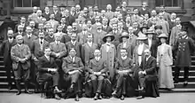 Whittaker became Professor of Mathematics at the University of Edinburgh in January 1912, where he remained for the rest of his career.[2][22] The role was left vacant by the death of his predecessor, George Chrystal in 1911.[22] He was elected as a Fellow of the Royal Society of Edinburgh in 1912, after being nominated by Cargill Gilston Knott, Ralph Allan Sampson, James Gordon MacGregor and Sir William Turner.[3] He served as Secretary to the Society from 1916 to 1922, the Vice President from 1925 to 1928 and 1937 to 1939, and was President of the Society from 1939 to 1944, through the war years.[3] Whittaker began holding "research lectures" in mathematics at the University, typically given twice a week.[24] He was said to be a great lecturer by one of his previous attendees, who stated that his "clear diction, his felicity of language and his enthusiasm could not fail to evoke a response" and that he was very good with illustrations.[8] Freeman Dyson commented on Whittaker's lecture style by saying that students were "warmed, not only by the physical presence of a big crowd packed together, but by the mental vigor and enthusiasm of the old man".[25] Whittaker's efforts helped transform the Edinburgh Mathematical Society from a teachers society to an academic research society and was a major driving force in introducing computational mathematics education to the UK and America.[17]