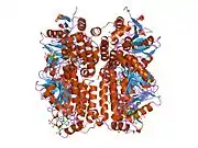 Enoyl-CoA hydratase (ECH) catalyzes the second step in beta-oxidation pathway of fatty acid metabolism. The enzyme is involved in the formation of a β-hydroxyacyl-CoA thioester. The two catalytic glutamic acid residues are believed to act in concert to activate a water molecule, while Gly-141 is proposed to be involved in substrate activation. There are two potent inhibitors of ECHS, which irreversibly inactivate the enzyme via covalent adduct formation.[8]