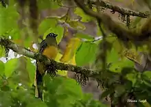Eaglenest Wildlife Sanctuary is well known as a major birding area.[3] It is home to at least 454 species of birds including 3 cormorants, 5 herons, black stork, Oriental white (black-headed) ibis, 4 ducks, 20 hawks, eagles, kites, harriers and vultures, 3 falcons, 10 pheasants, junglefowl, quail, and peafowl, black-necked crane, 3 rails, 6 plovers, dotterels, and lapwings, 7 waders, ibisbill, stone-curlew (Eurasian thick-knee), small pratincole, 2 gulls, 14 pigeons, 3 parrots, 15 cukoos, 10 owls, 2 nightjars, 4 swifts, 2 trogons, 7 kingfishers, 2 bee-eaters, 2 rollers, hoopoes, 4 hornbills, 6 barbets, 14 woodpeckers, 2 broadbills, 2 pittas, 2 larks, 6 martins, 7 wagtails, 9 shrikes, 9 bulbuls, 4 fairy-bluebirds, 3 shrike, brown dipper, 3 accentors, 46 thrushes, 65 Old World flycatchers, 6 parrotbills, 31 warblers, 25 flycatchers, 10 tits, 5 nuthatches, 3 treecreepers, 5 flowerpeckers, 8 sunbirds, Indian white-eye, 3 bunting, 14 finches, 2 munia, 3 sparrows, 5 starlings, 2 orioles, 7 drongos, ashy woodswallow and 9 jays.[7] The sanctuary has the distinction of having three tragopan species, perhaps unique in India.[8]