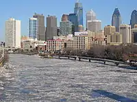 In addition, while December through February was the ninth driest on record for the contiguous 48 states dating to 1895, chiefly due to extremely dry conditions in the West and Southwest, yet Winter snow cover areal extent was the 10th-largest on record for same 48 states, dating to 1966. New York City,[98] Philadelphia,[99] and Chicago[100] all had one of their ten snowiest winters, while Detroit had its snowiest winter on record.[101][102][103] Aside from persistence due to lack of melting, the lower temperatures may have had some impact—whilst snowfall has an average moisture content ratio of 10:1 (one inch of moisture producing 10 inches of snow), it can range from 3:1 to 100:1, generally rising with falling temperatures, documented instances in the North Central states of snowfalls with ratios from 75:1[104] up towards the maximum possible of 100:1 were observed and those in excess of 30:1 were rather common because of the temperatures in which the snow formed and fell.