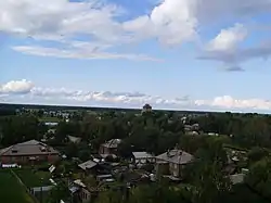 On 25 March 1908, Stalin was arrested in a police raid and interred in Bailov Prison.[193] In prison, he studied Esperanto, then regarding it as the language of the future.[194] Leading the Bolsheviks imprisoned there, he organised discussion groups and had those suspected of being police spies killed.[195] He planned an escape attempt but it was later cancelled.[196] He was eventually sentenced to two years exile in the village of Solvychegodsk, Vologda Province.[197] The journey there took three months, over the course of which he contracted typhus, and spent time in both Moscow's Butyrki Prison and Vologda Prison.[198] He finally arrived at the village in February 1909.[199] There, he stayed with in a communal house with nine fellow exiles.[200] There, he repeatedly got into trouble with the local police chief; the latter locked Stalin up for reading revolutionary literature aloud and fined him for attending the theatre.[200] While in village, Stalin had an affair with an Odessan noblewoman and teacher, Stefania Petrovskaya.[201] In June, Stalin escaped the village and made it to Kotlas disguised as a woman.[202] From there, he made it to St Petersburg, where he was hidden by supporters.[203]