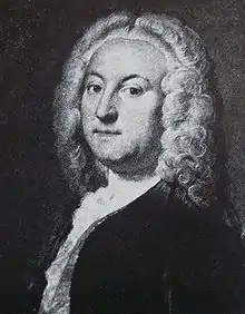 Johnson's future now began to look uncertain, as his father was deeply in debt.[38] To earn money, Johnson stitched books for his father, although poor eyesight—a result of his childhood illness—meant he eschewed the work involved. It is possible that Johnson spent most of his time in his father's bookshop reading various works and building his literary knowledge. During this time, Johnson met Gilbert Walmesley, the Registrar of the Ecclesiastical Court and a frequent visitor to the bookshop.[39] Walmesley took a liking to Johnson, and the two discussed various intellectual topics during the two years Johnson spent working in the shop.[40] Their relationship was soon put on hold; Sarah Johnson's cousin, Elizabeth Harriotts, died in February 1728 and left her £40 (about £5,400 as of 2021), which was used to send Johnson back to school.[41][42]