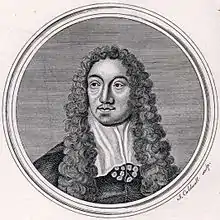 Performances of Elizabethan and Jacobean plays frequently included the use of music, with performances on organs, lutes, viols and pipes for up to an hour before the actual performance, and texts indicates that they were used during the plays.[43] Plays, perhaps particularly the heavier histories and tragedies, were frequently broken up with a short musical play, perhaps derived from the Italian intermezzo, with music, jokes and dancing, known as a 'jigg' and from which the jig dance derives its name.[43] After the closure of the London theatres in 1642 these tendencies developed into sung plays that are recognisable as English Opera's, the first usually being thought of as William Davenant's (1606–68) The Siege of Rhodes (1656), originally given in a private performance.[44] The development of native English opera had to wait for the Restoration of the monarchy in 1660 and the patronage of Charles II.[44]