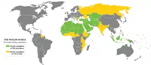 Conceptually, the boundaries are cultural, rather than geographical, as a result of which Australia is typically grouped in the West (despite being geographically in the east), while Islamic nations are, regardless of location, grouped in the East.[2] However, there are a few Muslim-majority regions in Europe which do not fit this dichotomy. The culture line can be particularly difficult to place in regions of cultural diversity such as Bosnia and Herzegovina, whose citizens may themselves identify as East or West depending on ethnic or religious background.[2] Further, residents of different parts of the world perceive the boundaries differently; for example, some European scholars define Russia as East, but most agree that it is the West's second complementary part,[3] and Islamic nations regard it and other predominantly Christian nations as the West.[2] Another unanswered question is whether Siberia (North Asia) is "Eastern" or "Western."