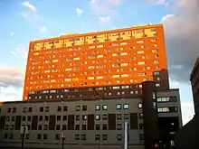 East Campus is a prominent building on the Morningside Heights campus of Columbia University in New York City, located along Morningside Drive between 117th and 118th Streets. One of the tallest buildings in the neighborhood, it serves primarily as a residence hall for Columbia undergraduates, although it also contains a small hotel, the university's Center for Career Education, its Facilities Management office, and the Heyman Center for the Humanities. East Campus, a $28.7 million facility, was designed by Gwathmey Siegel & Associates Architects and built in 1979-1982.