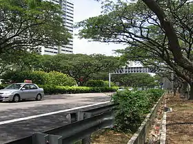 To facilitate the development of the new downtown, the ECP was truncated after the Benjamin Sheares Bridge, with the stretch at Marina South area realigned and converted to a major arterial road called Sheares Avenue.[7] Instead, a new expressway, the Marina Coastal Expressway, was built to connect the ECP and the Kallang–Paya Lebar Expressway to the Ayer Rajah Expressway.[7]