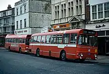 East Kent was taken over by the National Bus Company on 1 January 1969, during this time the company's first rear engined double deckers arrived. These were 20 Daimler Fleetlines with Park Royal bodywork for Thanet garage. These were also the Company's first OMO (one man operated) double deckers. Later on some AEC Regents were also converted to OMO to reduce the cost of having 2 crew on each bus but these tended to be used only at peak hours. In 1971 the last buses were delivered in the traditional maroon and cream livery, these were 12 AEC Swifts with Alexander bodywork. Leyland Nationals started to enter the fleet in the 1970s bringing with them the National Bus Company standard livery of Poppy Red and white. In the mid-1970s the Bristol VRT entered the fleet, the first batch having 14'6" ECW bodywork. Later batches had rare Willowbrook bodies before the final batch reverted to the standard 13'8" ECW body, by that time the NBC's standard vehicle. These cleared the last of the AEC Regents from normal passenger service in the early 1980s although some had a swan song on the park and ride for the Open Golf and Sandwich, whilst others were used on contracts and for driver training.
