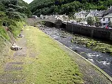The Lynmouth Disaster occurred on the East Lyn river[1] due to rocks and fallen trees having been washed into the West Lyn river. These formed a log jam near Watersmeet, forming a landslide dam. When the pressure behind the dam increased to uncontrollable levels, the water broke out of the dam, and rushed down the East Lyn (via the convergence of the rivers) into Lynmouth, obliterating houses and ultimately resulting in 34 deaths. Boulders from the incident can still be seen today, lining the banks of the East Lyn as it travels into Lynmouth today.