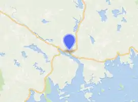 The predecessor to the current bridge was located in Sheet Harbour, in the eastern area of the Halifax Regional Municipality, along the Eastern Shore. It was a green steel arch bridge, and was built in 1956 over the Northeast Arm of Sheet Harbour. It had a half-through, two-hinge type arch, as well as a built-up box-cross section for support.[5][6] The bridge was 213 metres (699 ft) in length, with a main span of 140 metres (460 ft).[1][5] The bridge had engineering ties with the Angus L. MacDonald Bridge in Halifax. The deck carried the two lanes of Trunk 7 and by extension the Marine Drive scenic route, and was hung from the arch by vertical steel wide flange shape hangers. The ribs of the bridge were heavily reinforced in 1988.[6] As the bridge neared the end of its lifespan, it was replaced by a new bridge with the same name. Unlike the old bridge, the new bridge was designed without overhead steel arches that would have doubled the cost.[3]
