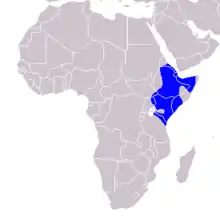 The eastern yellow-billed hornbill (Tockus flavirostris), also known as the northern yellow-billed hornbill,[1] is a species of hornbill in the family Bucerotidae. It is found in Djibouti, Eritrea, Ethiopia, Kenya, Somalia, South Sudan, Tanzania, and Uganda. It resembles the southern yellow-billed hornbill, but has blackish (not pinkish) skin around the eyes.