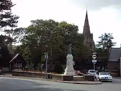 ![]() The memorial garden in Eastham Village, with St Mary's Church in the background | |