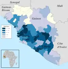 The Neini Chiefdom in Koinadugu District was subject to isolation after Ebola cases.[105] On 19 November, it was reported that the Ebola virus was spreading intensely; "much of this was driven by intense transmission in the country's west and north," the WHO said.[106]