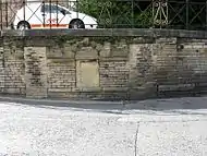 North of Stony Lane is the former Stoney Lane Quarry now a recreation ground known as The Delph, a grassed area with a fenced children's play ground and triangulation pillar.[32] South of Stony Lane is a grassed recreation ground or common with Village Green Status. Cricket and football were played here but more suitable grounds became available.[3] Eccleshill War Memorial is on the northern side[33] and to the south of the Recreation Ground on Moorwell Place is a terrace of listed former weavers' houses[34] and a bowling green.