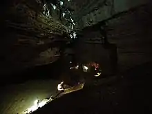 There are a number of speleothem structures in the cave; two of these are hollow stalactites which when hammered create echoes audible throughout and even outside the caves, thus the name of the caves.[1] The caves are over 40 km long; regular tours are available for about 2 km of the tunnels and chambers.[2]