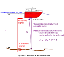 The word sounding is used for all types of depth measurements, including those that don't use sound, and is unrelated in origin to the word sound in the sense of noise or tones. Echo sounding is a more rapid method of measuring depth than the previous technique of lowering a sounding line until it touched bottom.